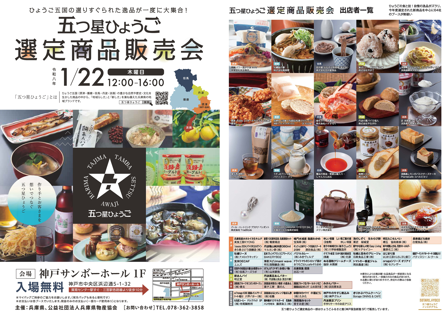 令和8年1月22日(木)、神戸サンボーホールで行われる「五つ星ひょうご選定商品販売会」に出店いたします!