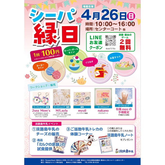 2026年4月26日(日)、南あわじ市のショッピングセンター・シーパで、チーズの試食販売コーナーと、ご当地牛乳トレカの体験ブースを設置します。